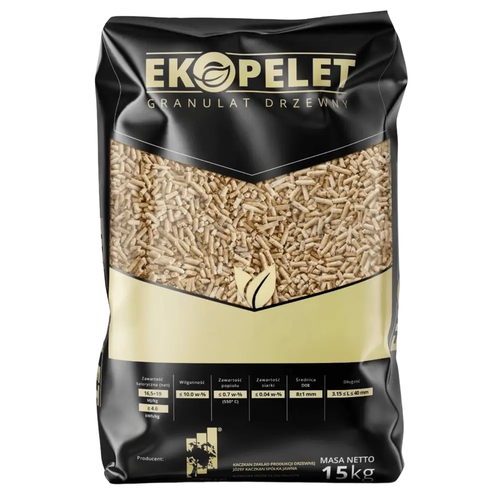 Pellet drzewny EkoPelet to produkt najwyższej klasy wytwarzany z wyselekcjonowanego, twardego drewna – grabu, dębu i buku. Ten premium pellet drzewny wyróżnia się wysoką wartością opałową (≥17,74 MJ/kg) oraz zminimalizowaną zawartością popiołu (≤0,42%), co przekłada się na wyjątkową efektywność spalania i rzadsze czyszczenie kotła.